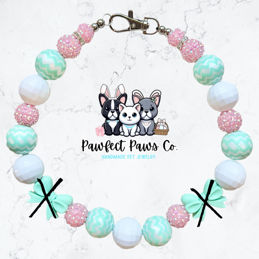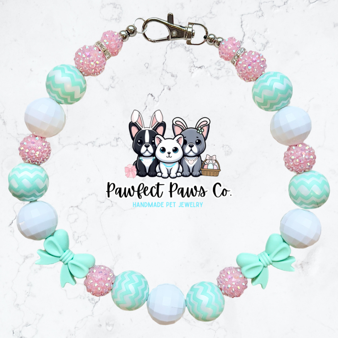 Cotton Candy Cutie* Teal & Pink Sparkle Easter/Spring Custom Beaded Dog/Cat Necklace!