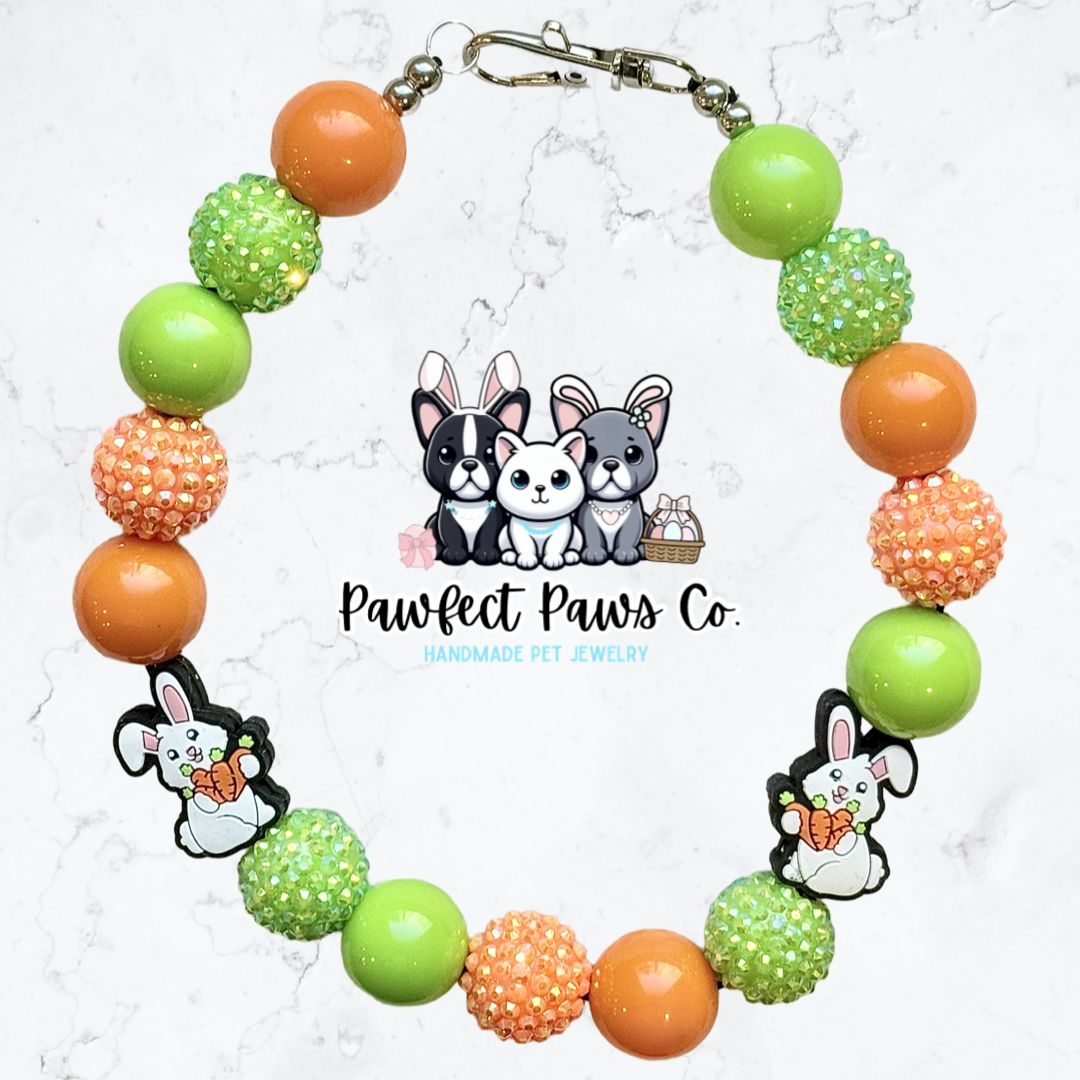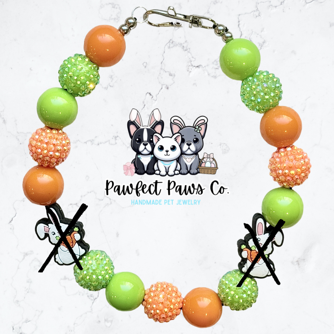 Hoppy Harvest* Green & Orange Sparkle Easter/Spring Custom Beaded Dog/Cat Necklace!