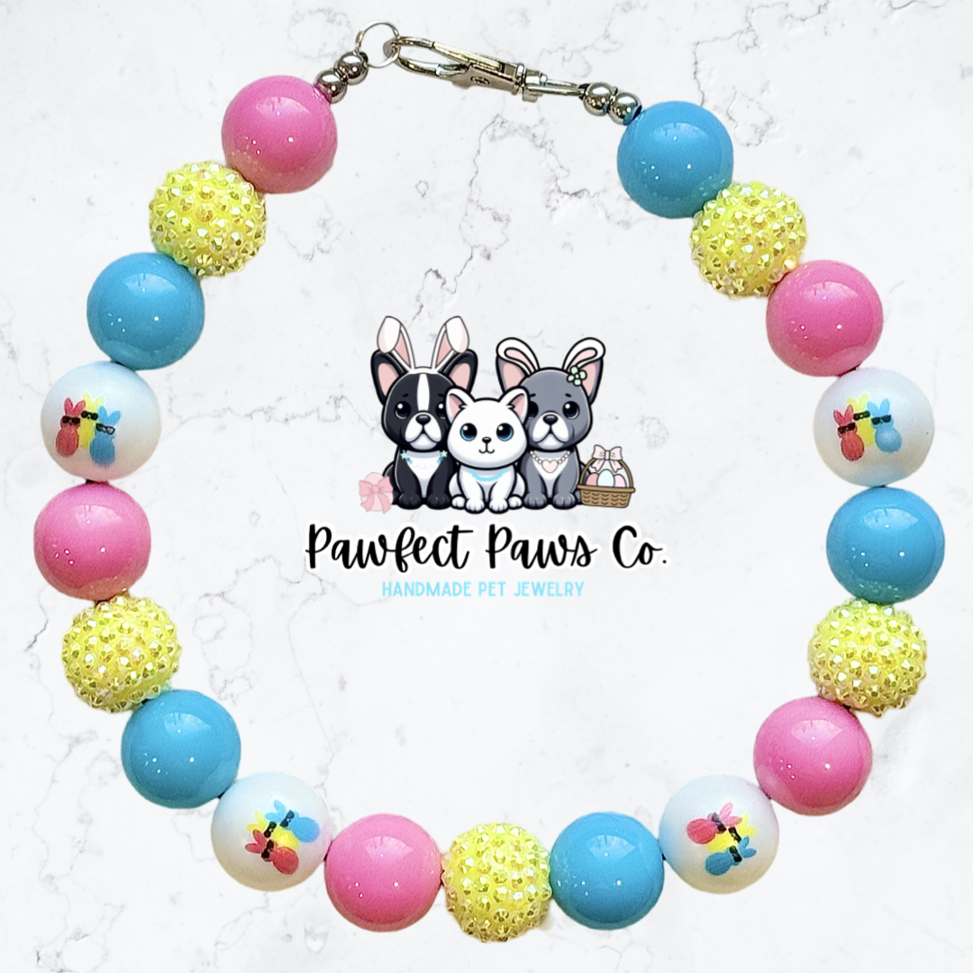 Peep It Cool* Pink, Blue & Yellow Sparkle Easter/Spring Custom Beaded Dog/Cat Collar Necklace!