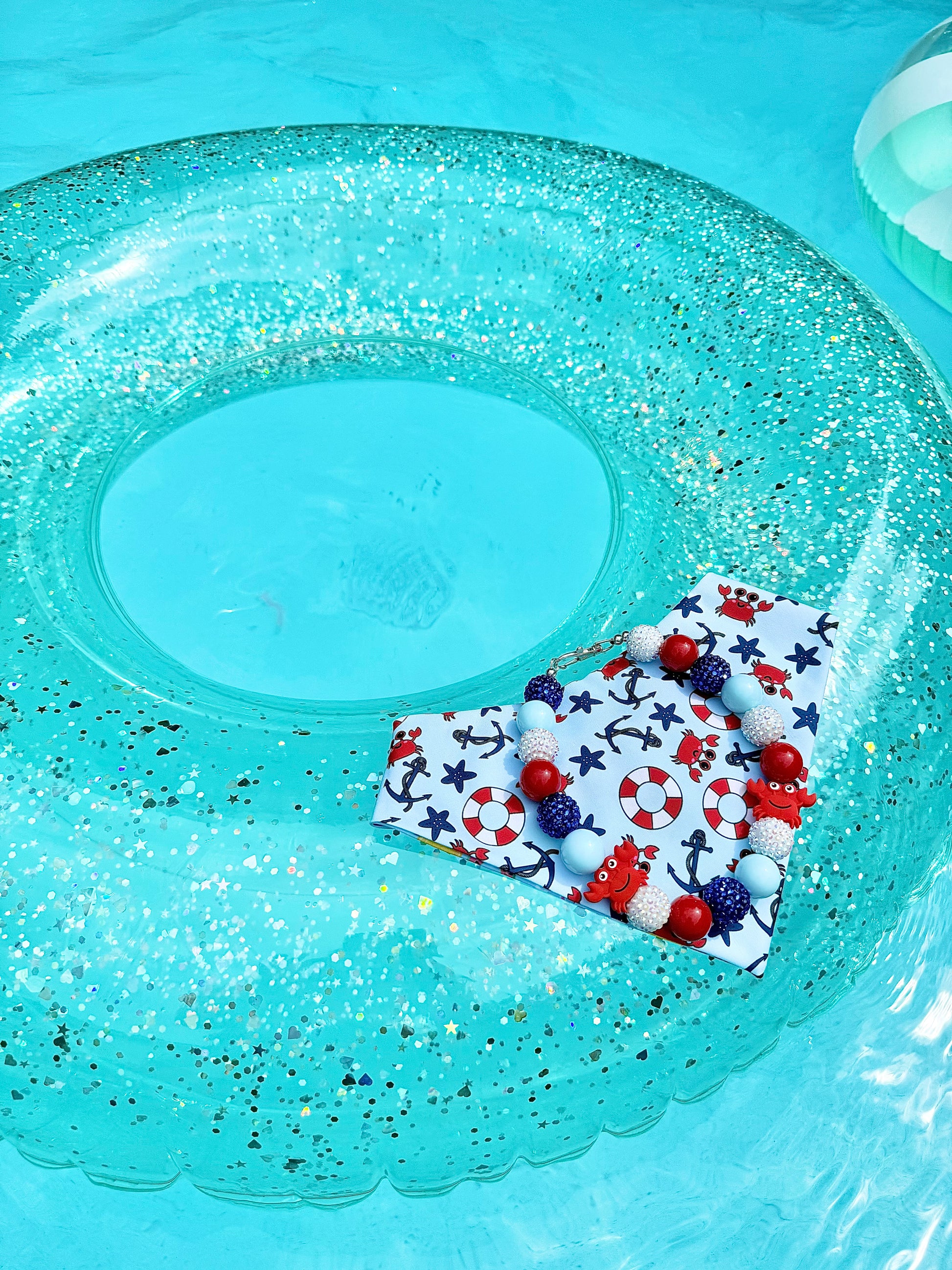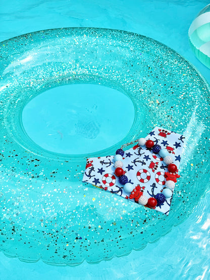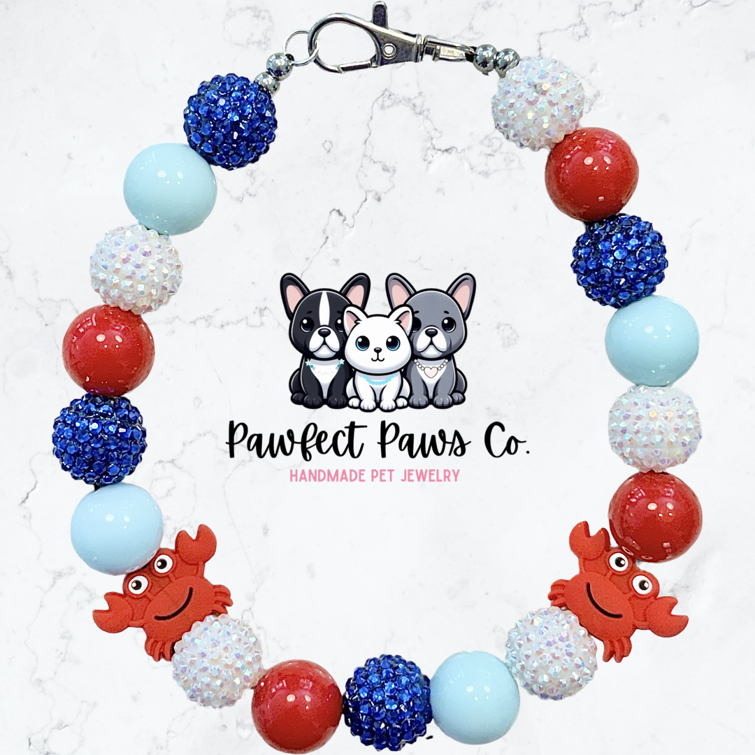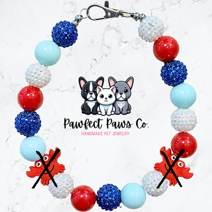 Oh Bouy* Red, Blue & White Sparkle Beach Crab Custom Beaded Dog/Cat Necklace! Collab with @IsleDesignsNY!