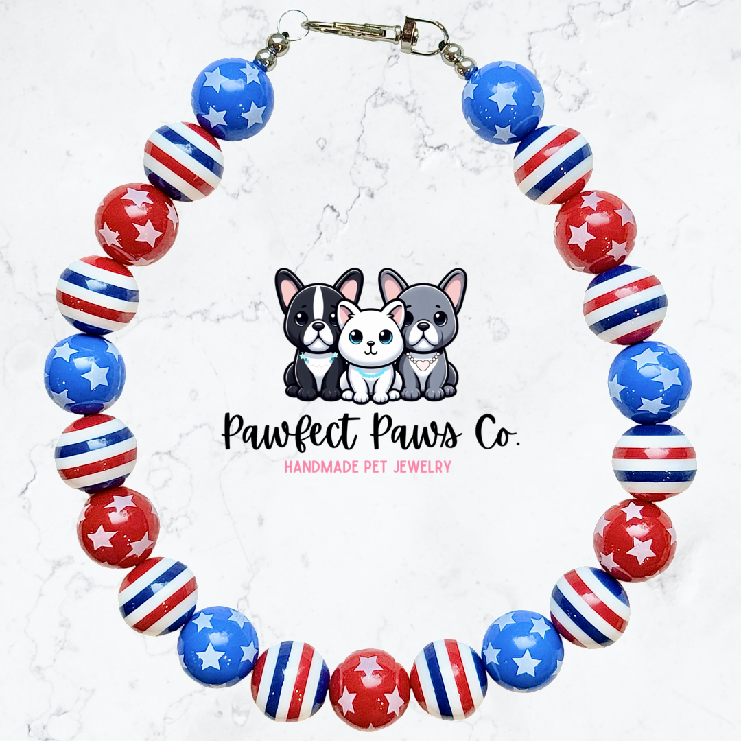 Stars & Stripes* Red, White & Blue Patriotic Beaded Dog/Cat Necklace!