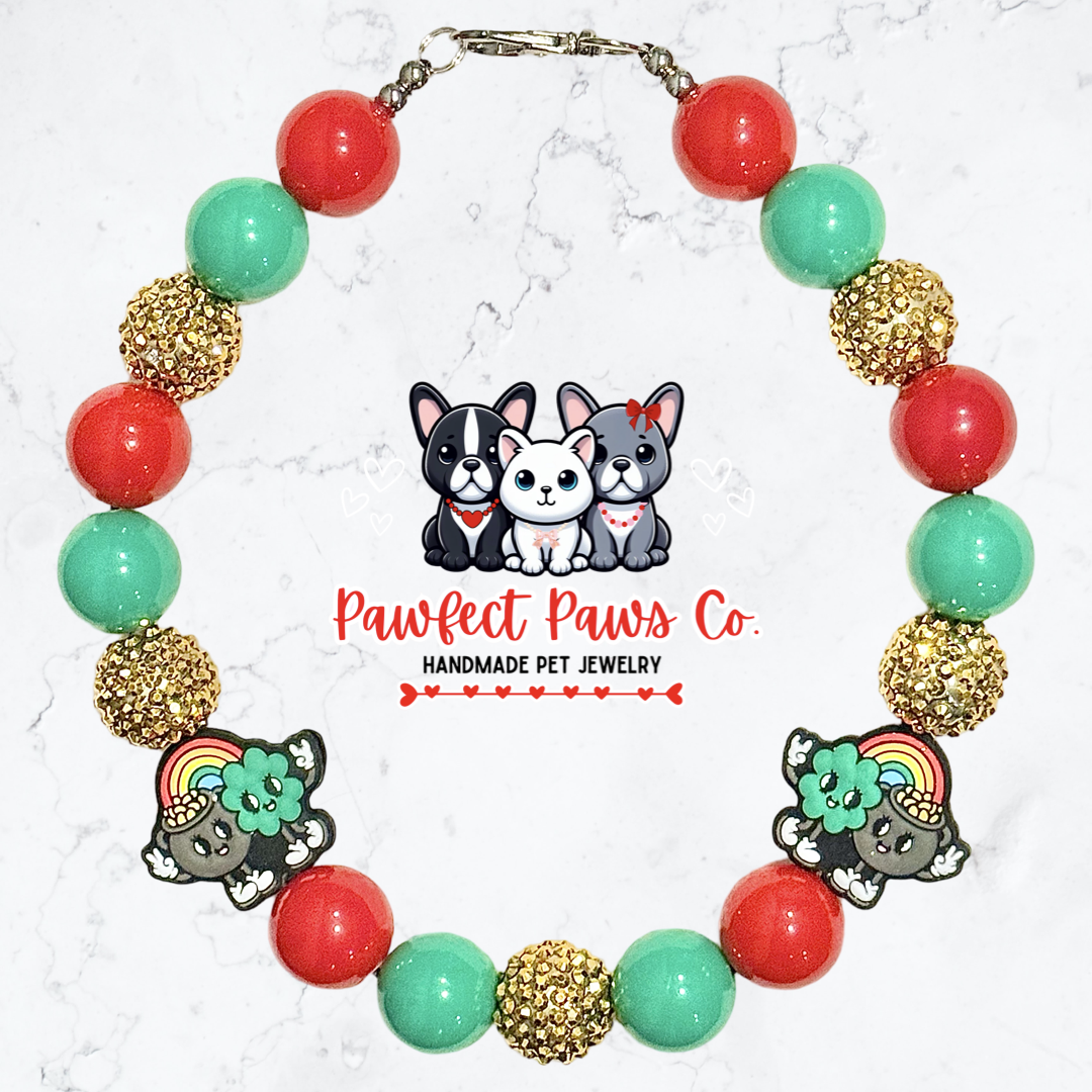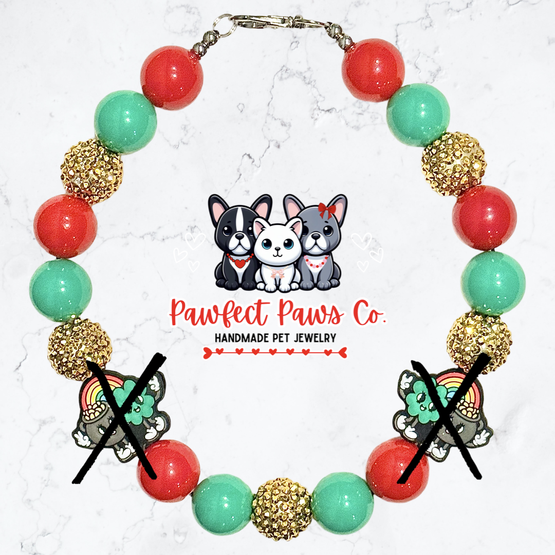Paws of Gold* Green, Red & Gold Sparkle St. Patrick’s Day Custom Beaded Dog/Cat Necklace!