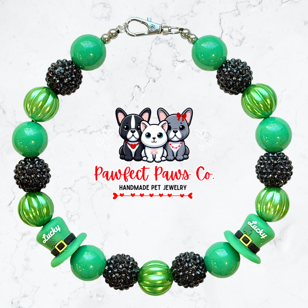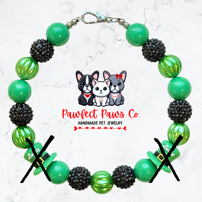 Lucky Leprechaun* Green & Black Sparkle St. Patrick’s Day Custom Beaded Dog/Cat Necklace!