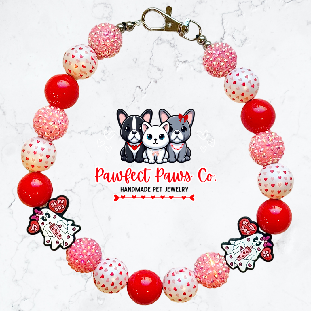 Don’t Ghost Me* Red & Pink Sparkle Valentines Day Ghost Custom Beaded Dog/Cat Necklace!