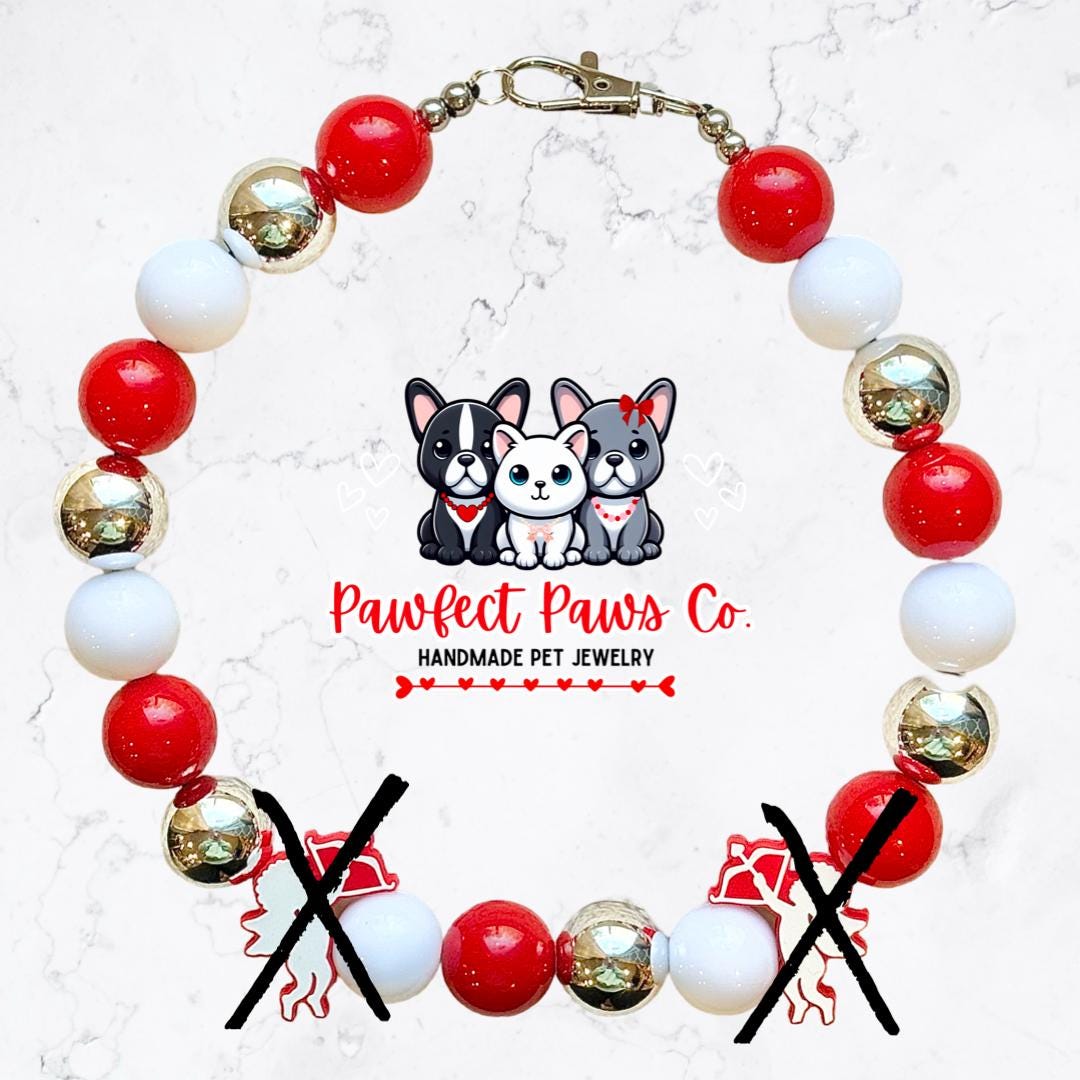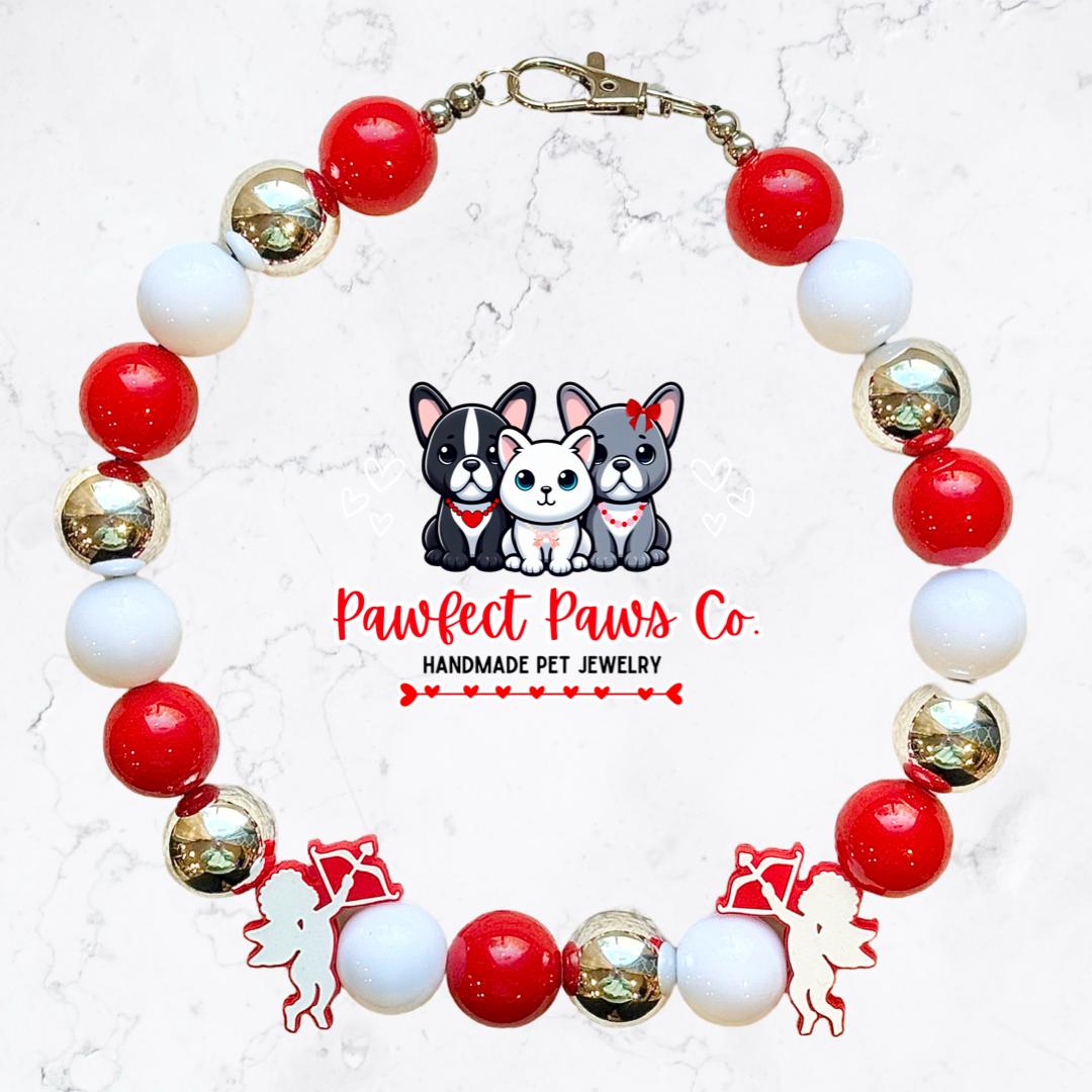 Cupid’s Arrow* Red, White & Silver Valentines Day Cupid Custom Beaded Dog/Cat Necklace!