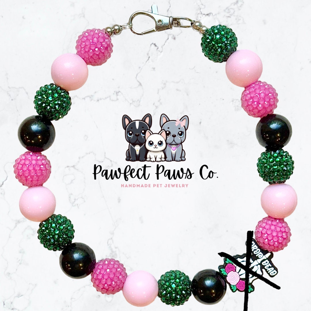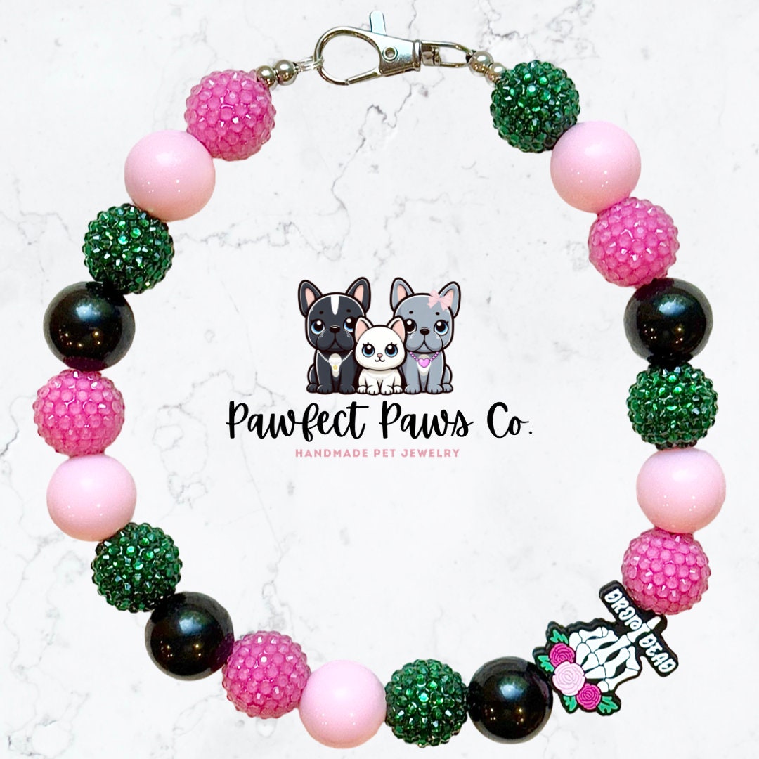 Drop Dead* Black, Pink & Green Sparkle Skull Custom Beaded Dog/Cat Necklace!
