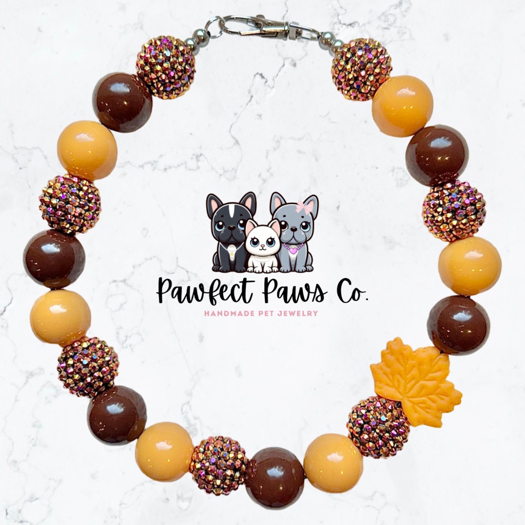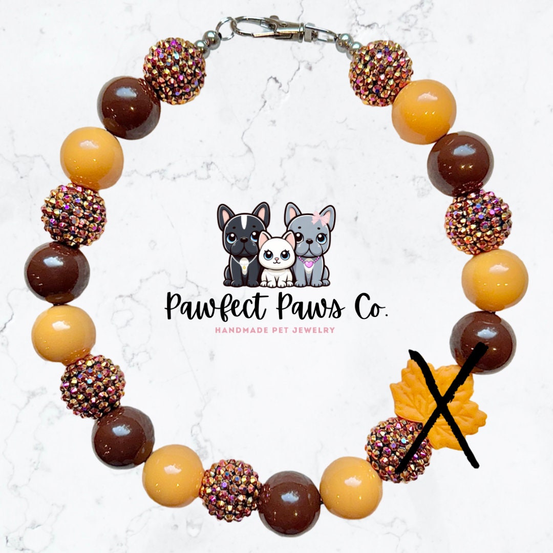 ¡Collar personalizado con cuentas para perro o gato con hojas otoñales brillantes en color marrón y tostado "Falling For You"!