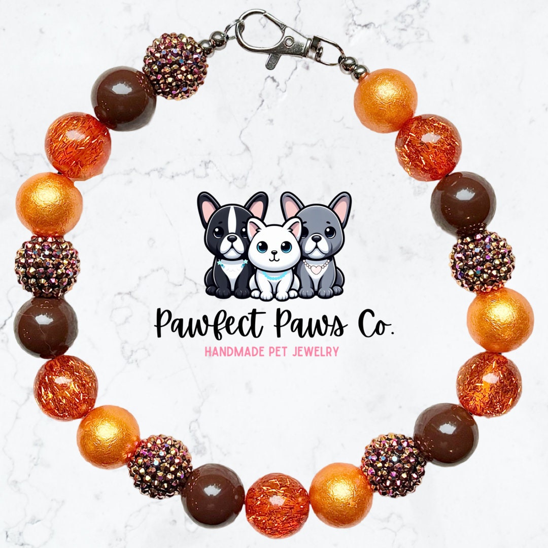 Harvest Wishes* Orange & Brown Sparkle Thanksgiving Autumn Custom Beaded Dog/Cat Necklace!