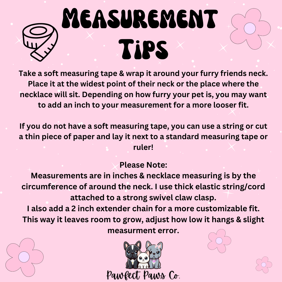 *Todos nuestros productos están hechos a mano y siempre deben manipularse con cuidado. Tenga en cuenta que este artículo está diseñado para usarse como un collar llamativo y no para usarse en lugar de un collar real. Nunca se debe colocar una correa en ninguno de nuestros collares.