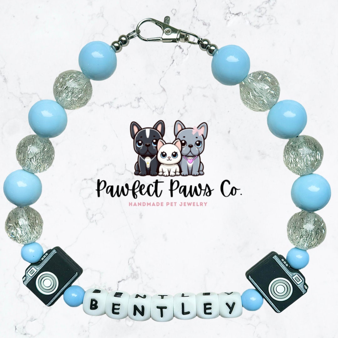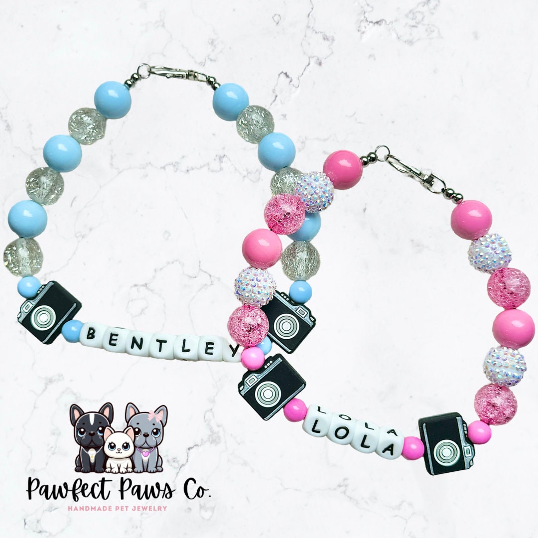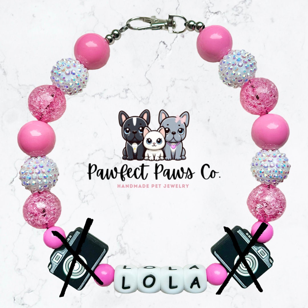 ¡Collar para perro o gato con cuentas personalizado con nombre, palabra o identificador de redes sociales en color rosa o azul de Influencer*!