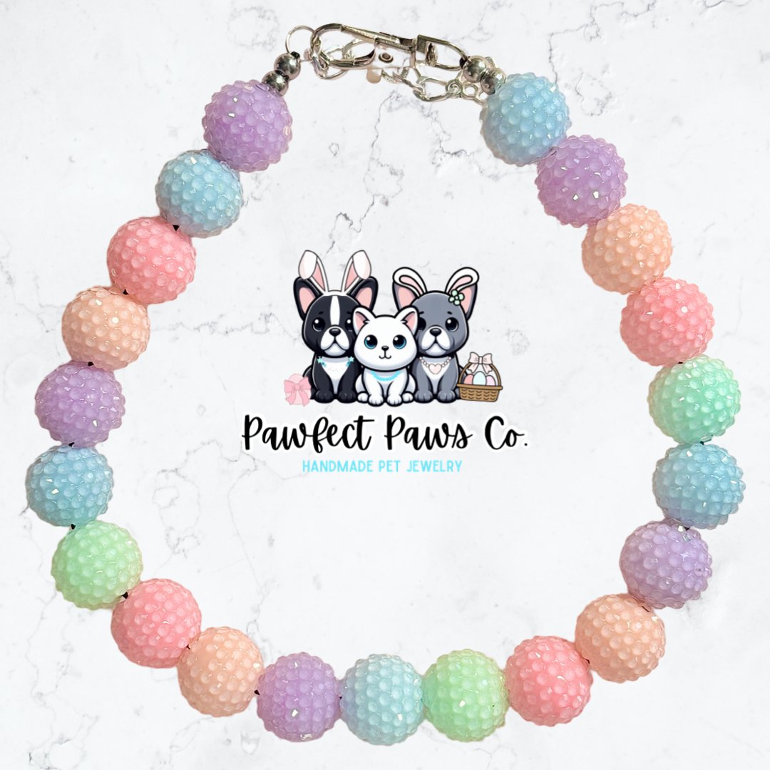 ¡Collar para perro o gato con cuentas personalizado, de Pastel Paws*, con destellos coloridos y primaverales!