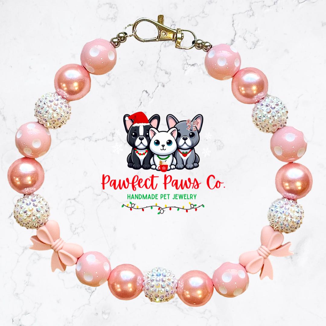 Pink Christmas* Pink & White Sparkle Christmas Bow Custom Beaded Dog/Cat Necklace!