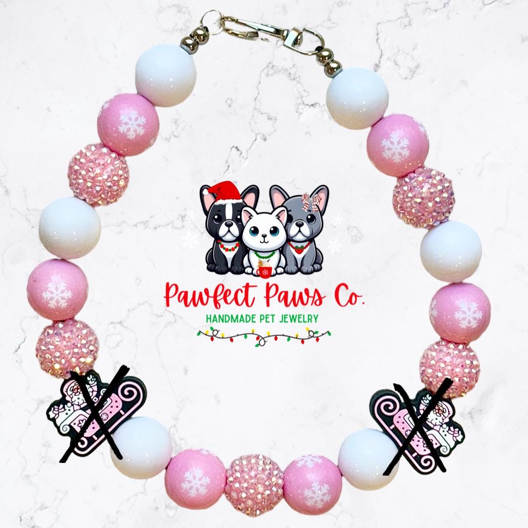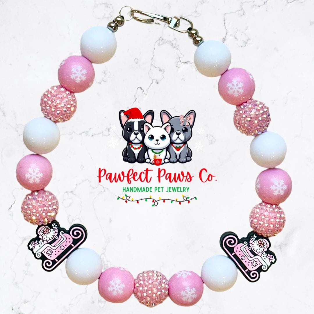 Sleigh All Day* Pink & White Sparkle Santa Custom Beaded Dog/Cat Necklace!