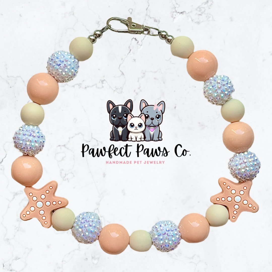 ¡Collar para perro o gato con cuentas personalizado con estrella de mar brillante en color naranja, tostado y blanco Seaside Sparkle*!