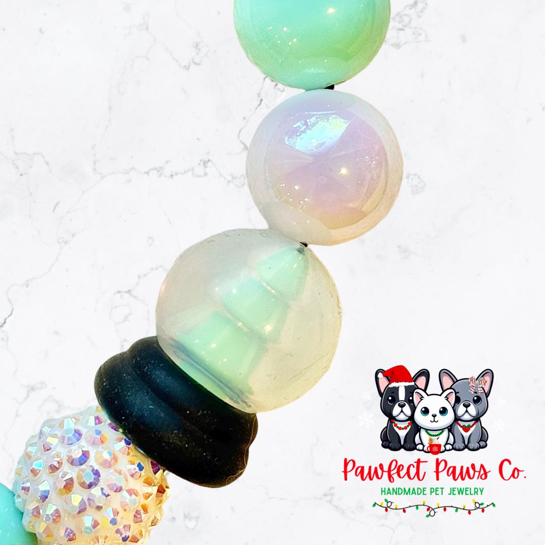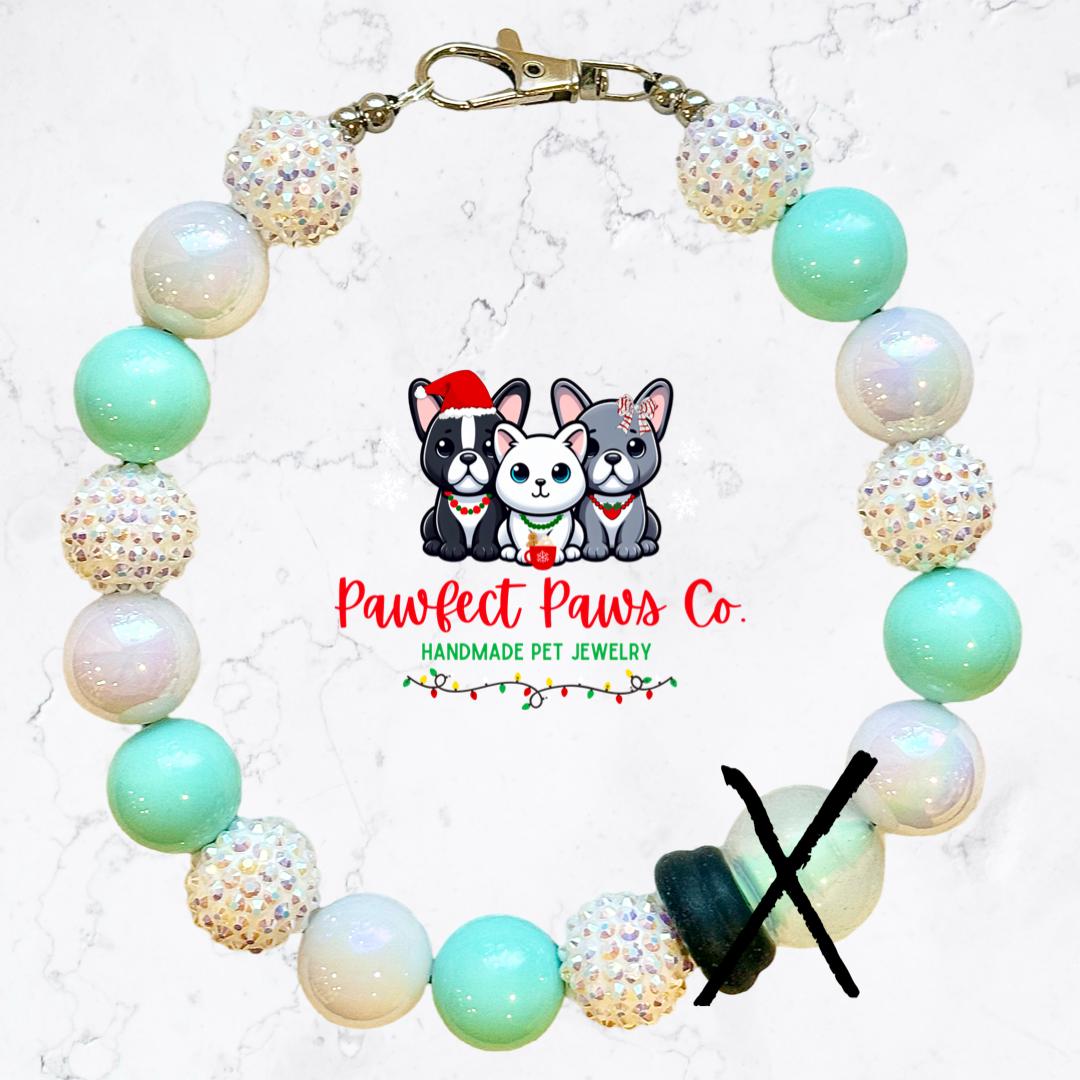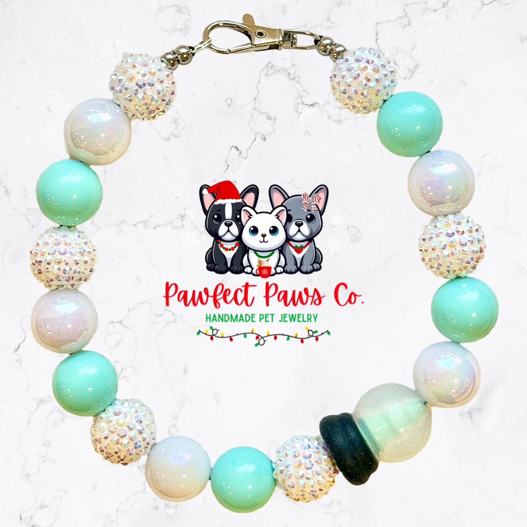 Snowglobe Shimmer* Teal & White Sparkle Christmas Snowglobe Custom Beaded Dog/Cat Necklace!