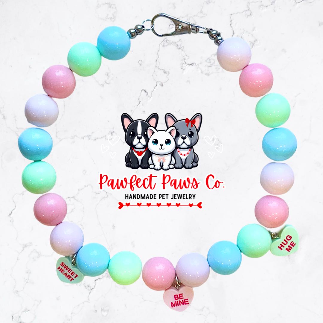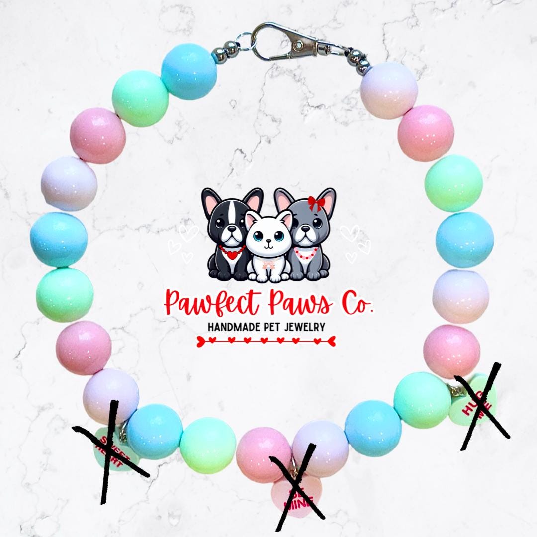 Sweet Talk* Pastel Blue, Pink & Green Valentines Day Candy Convo Heart Custom Beaded Dog/Cat Necklace!