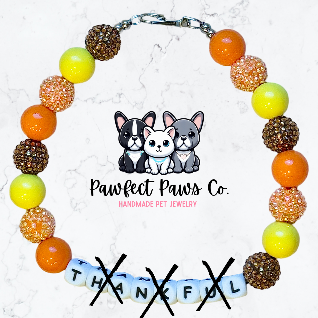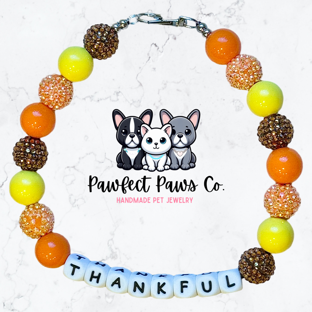 Thankful* Yellow, Brown & Orange Sparkle Thanksgiving Word Custom Beaded Dog/Cat Necklace