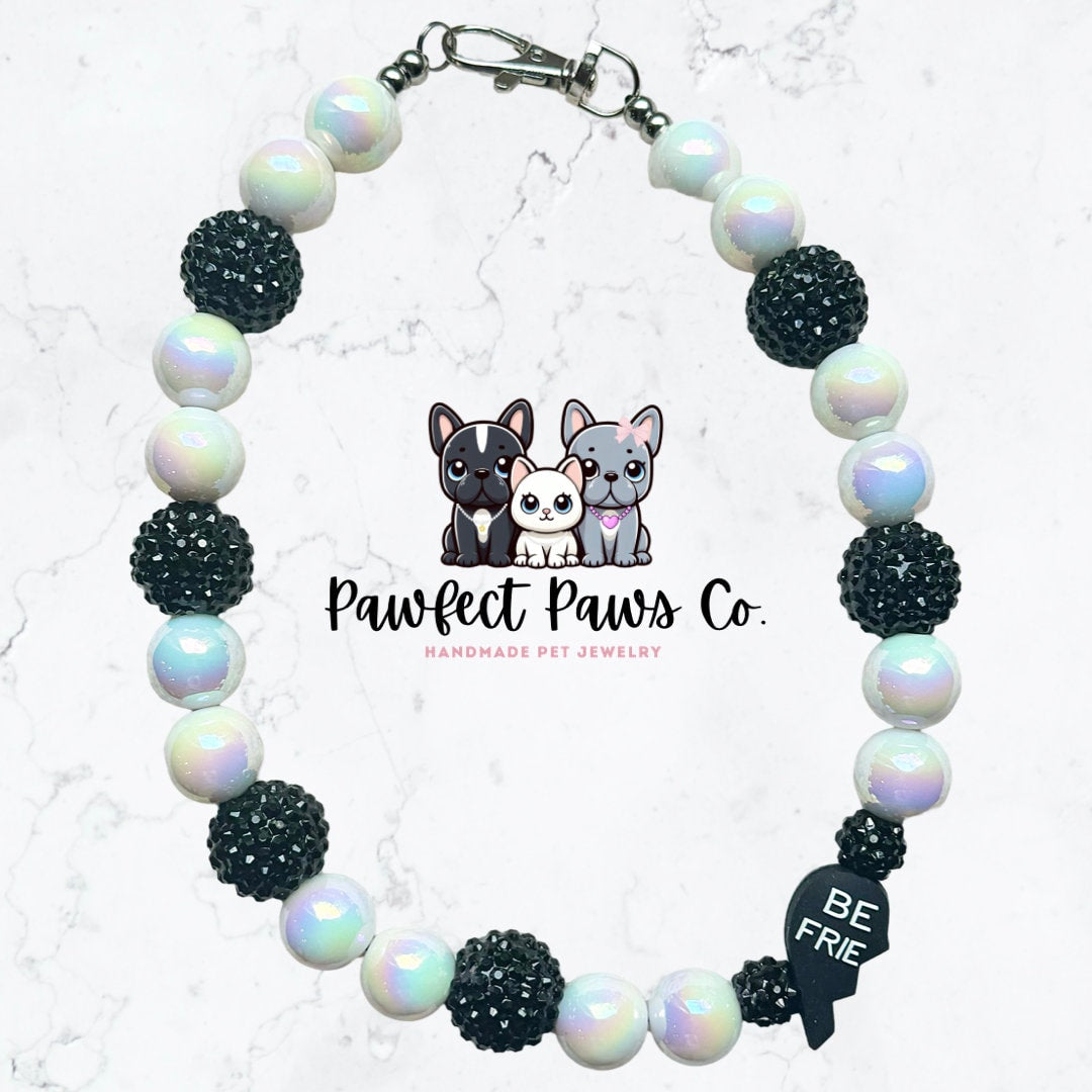 Best Furiends* Black & White Best Friend Half Heart Custom Beaded Dog/Cat Collar Necklace!
