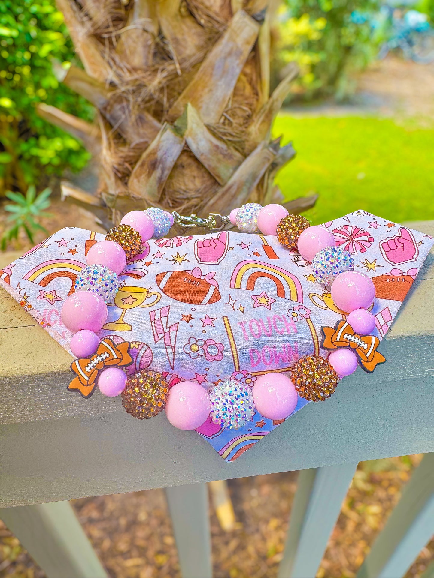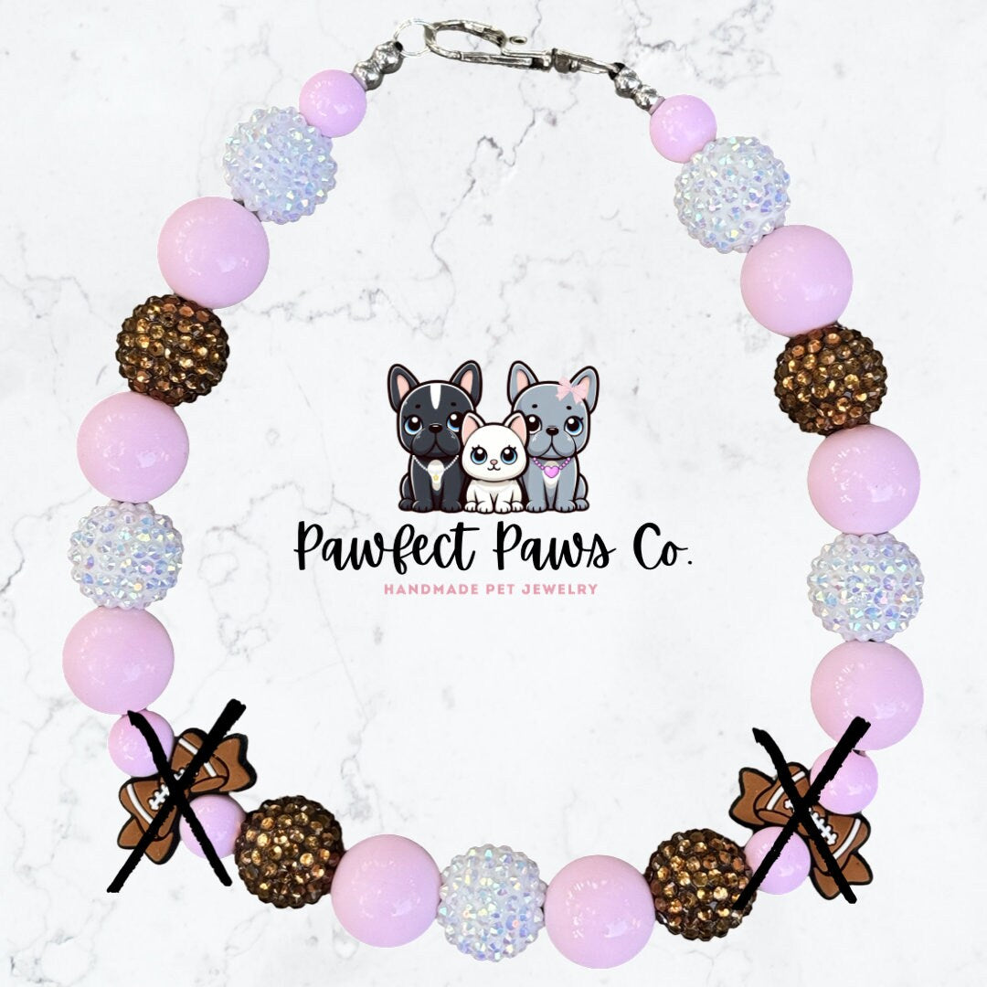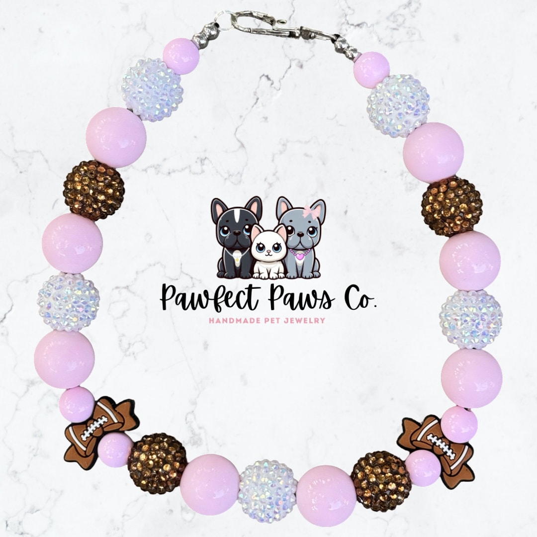 Goals & Bows* Pink, Brown and White Sparkle Football Custom Beaded Dog/Cat Necklace!