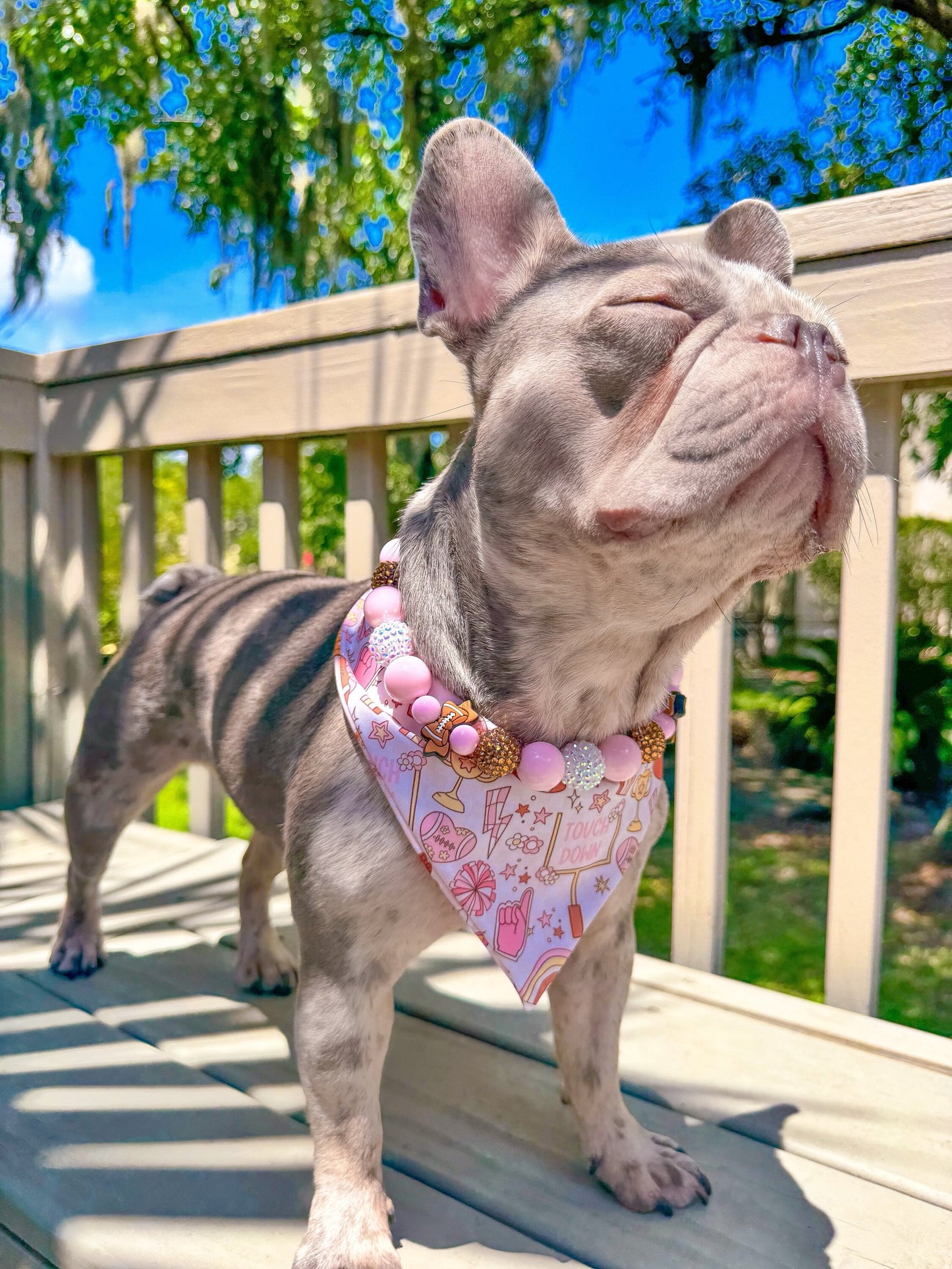 *Our products are all handmade and should always be handled with care. Please keep in mind, this item is intended to be worn as a statement necklace & not to be worn in place of an actual collar. A leash should never be attached to any of our necklaces.
