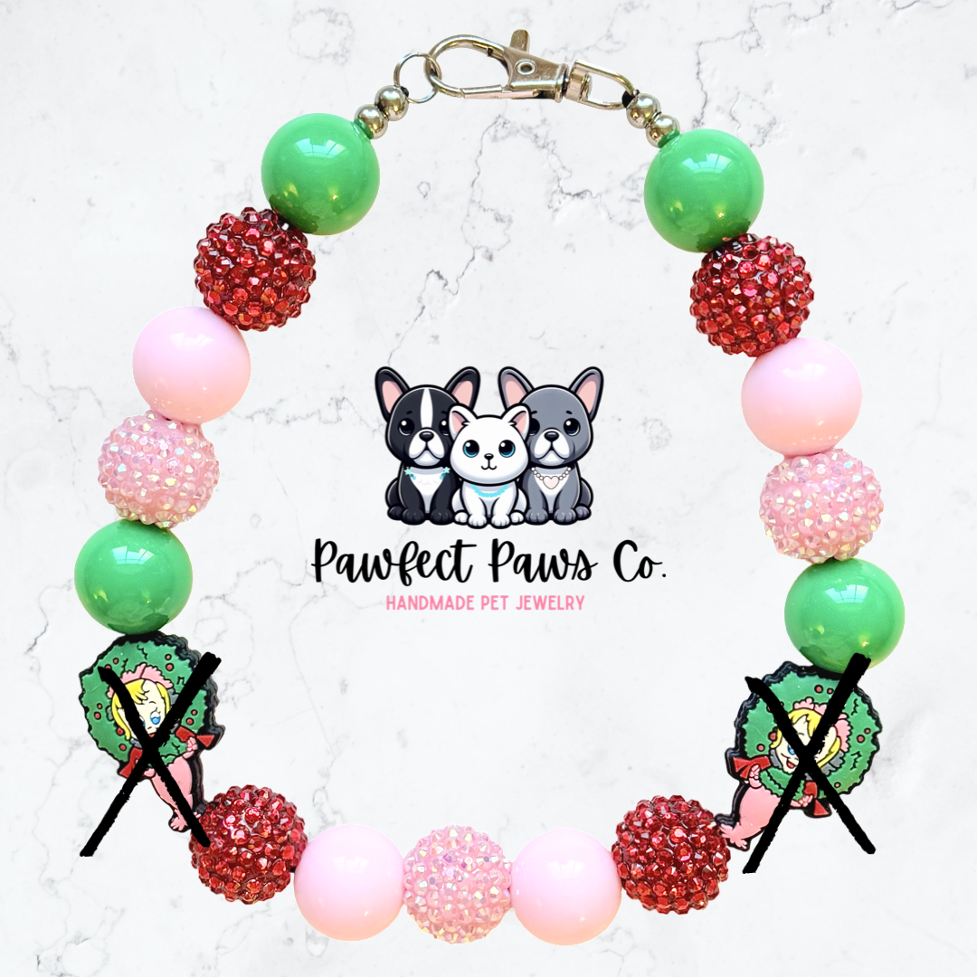 Cindy* Green, Red & Pink Sparkle Christmas Custom Beaded Dog/Cat Necklace!