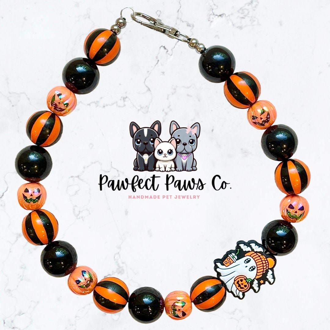 Coffee Boo* Orange & Black Pumpkin Ghost Custom Beaded Dog/Cat Necklace!
