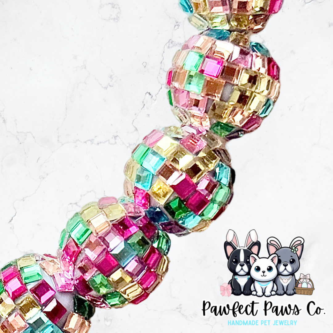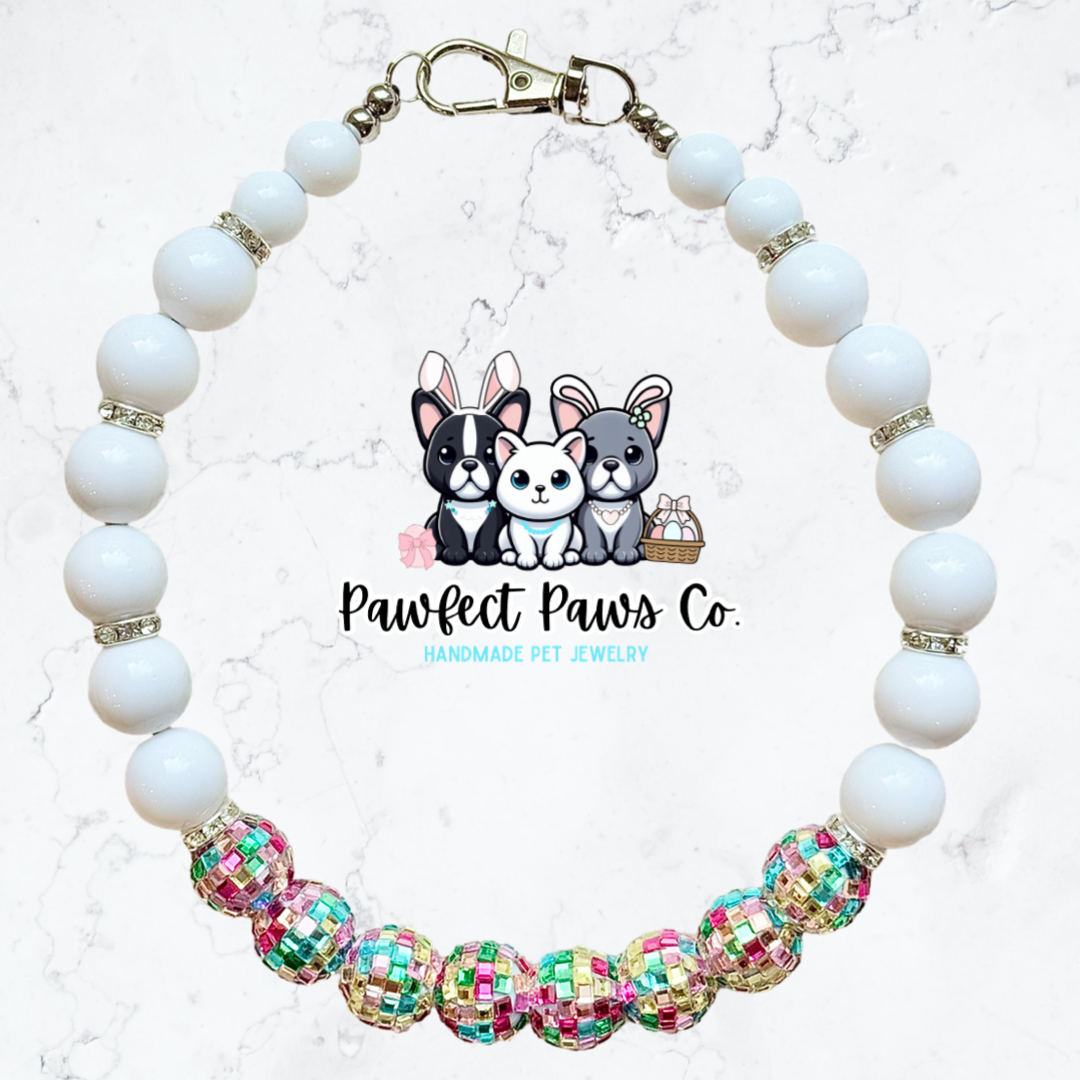 Dainty Disco* Pastel Disco & White Easter/Spring Custom Beaded Dog/Cat Collar Necklace!