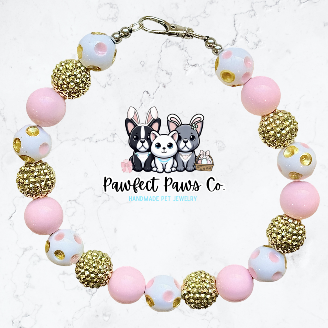 Dotted Delight* Pink & Gold Sparkle Easter/Spring Custom Beaded Dog/Cat Collar Necklace!