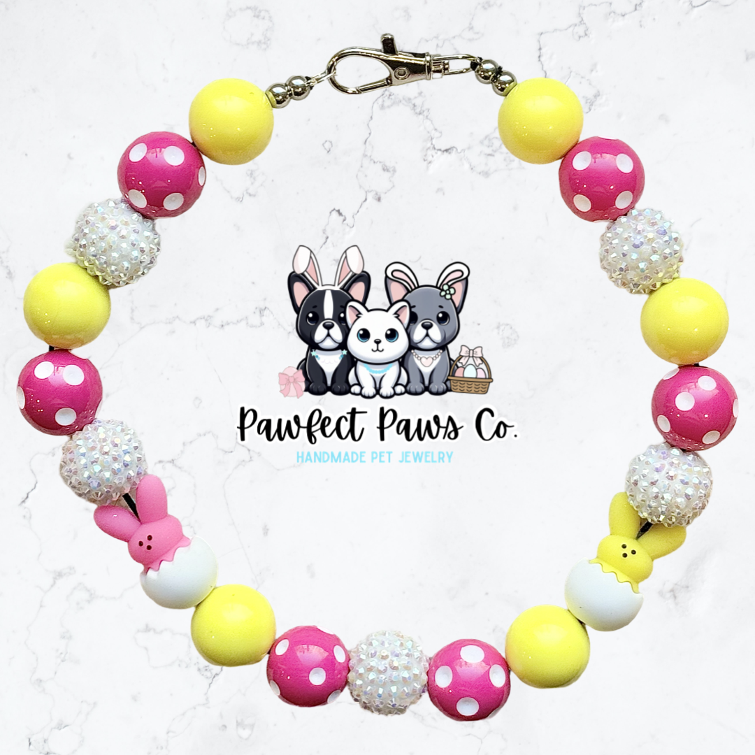 Peep Pop* Yellow & Pink Sparkle Easter/Spring Custom Beaded Dog/Cat Necklace!