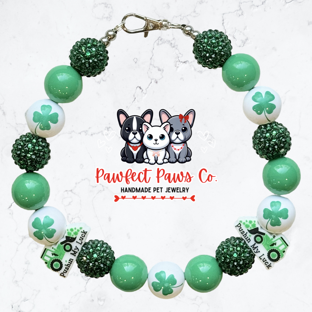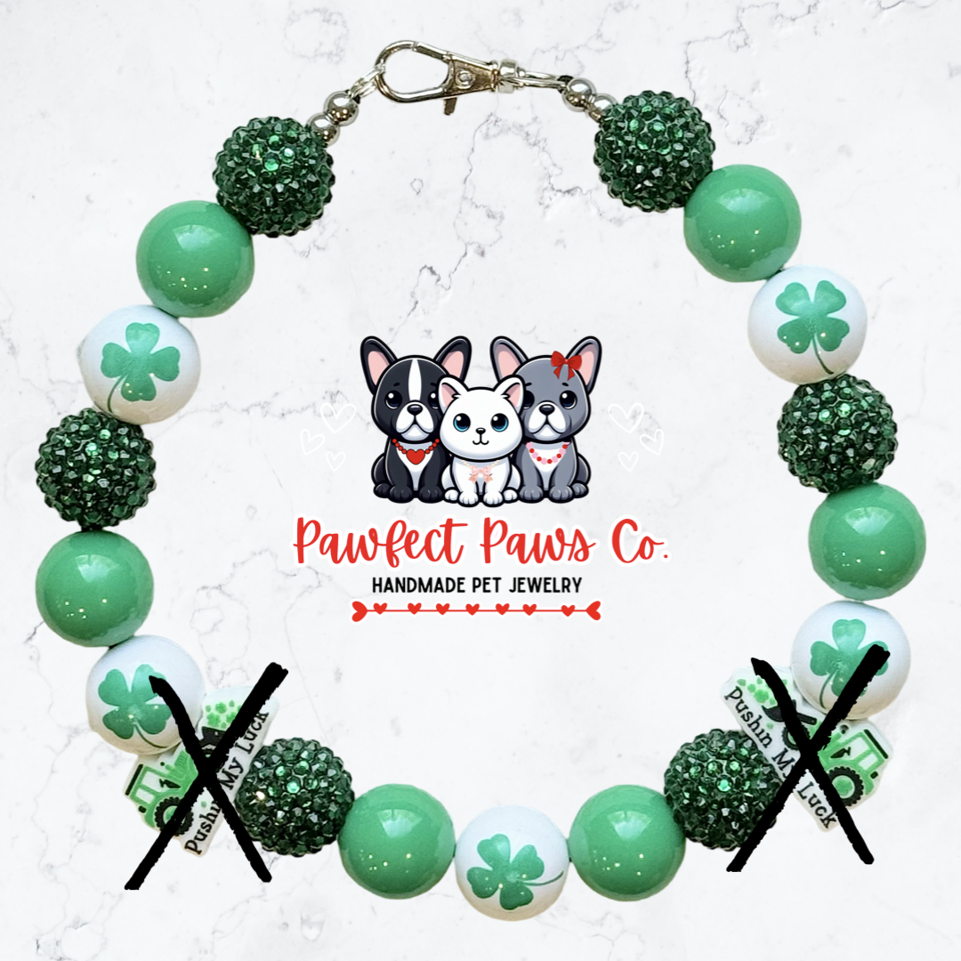 Pushin’ my Luck* Green Sparkle St. Patrick’s Day Custom Beaded Dog/Cat Necklace!