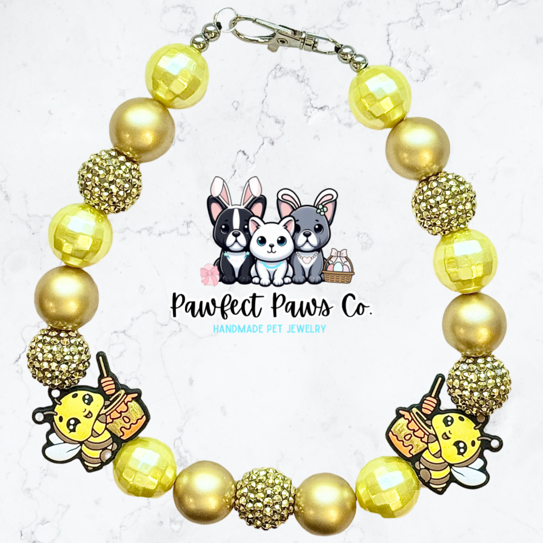 Sweet Honeybee* Yellow & Gold Sparkle Spring Bee Custom Beaded Dog/Cat Necklace!