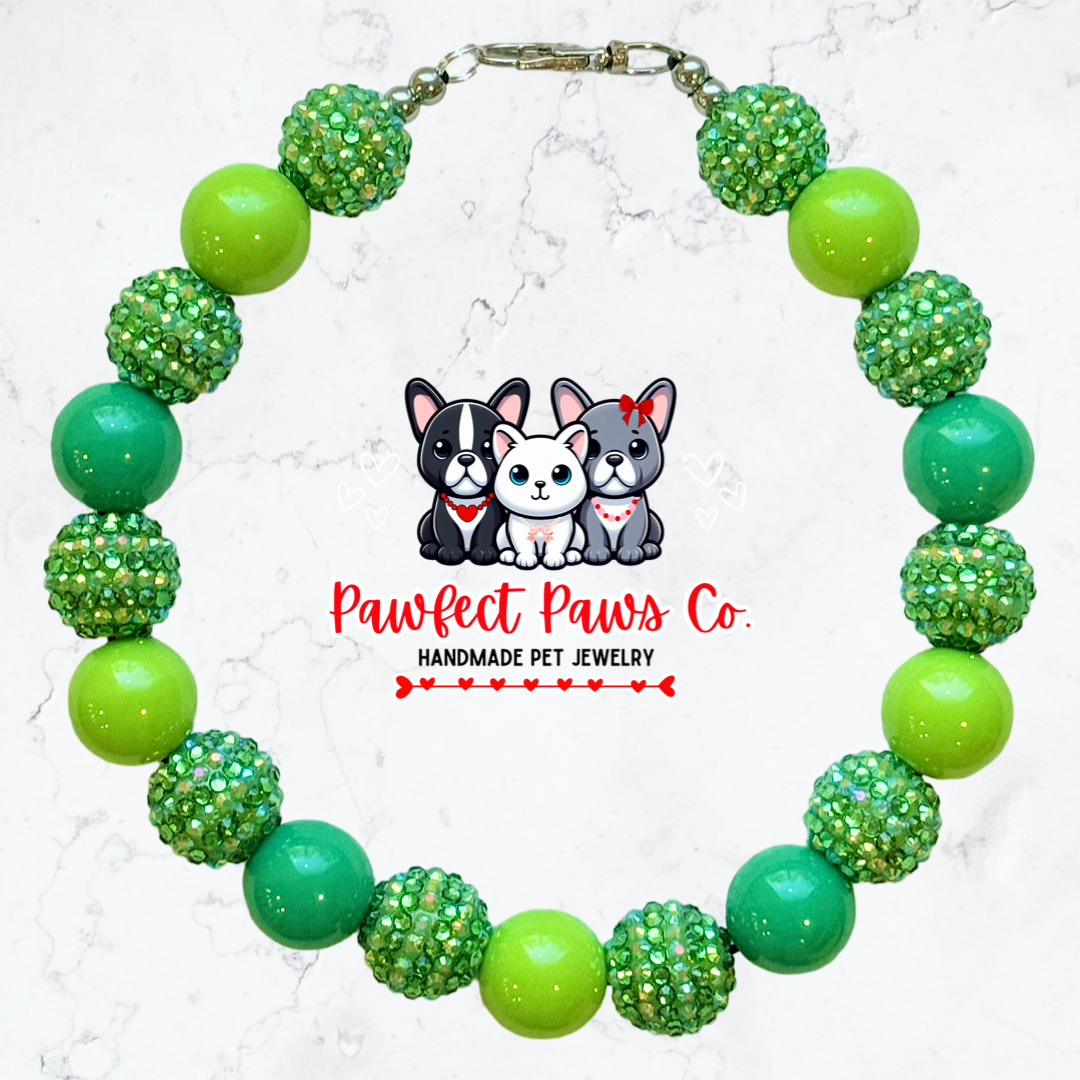 Shimmering Shamrock* Green Sparkle St. Patrick’s Day Custom Beaded Dog/Cat Necklace!