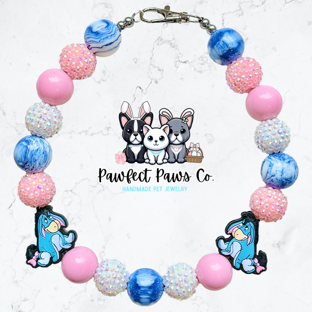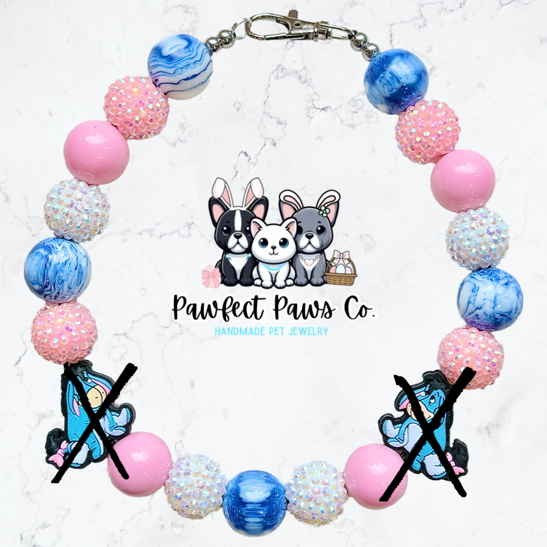 Cloudy Day* White & Pink Sparkle Eyeore Custom Beaded Dog/Cat Necklace!