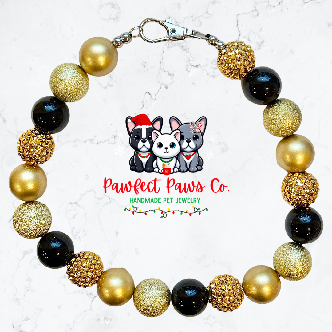 Midnight Kiss* Black & Gold Sparkle New Years Eve Custom Beaded Dog/Cat Necklace!