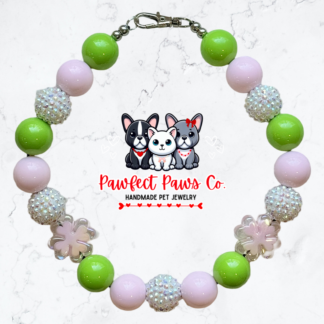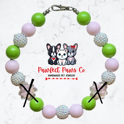 Clover Cutie* Green, Pink & White Sparkle St. Patrick’s Day Custom Beaded Dog/Cat Necklace!