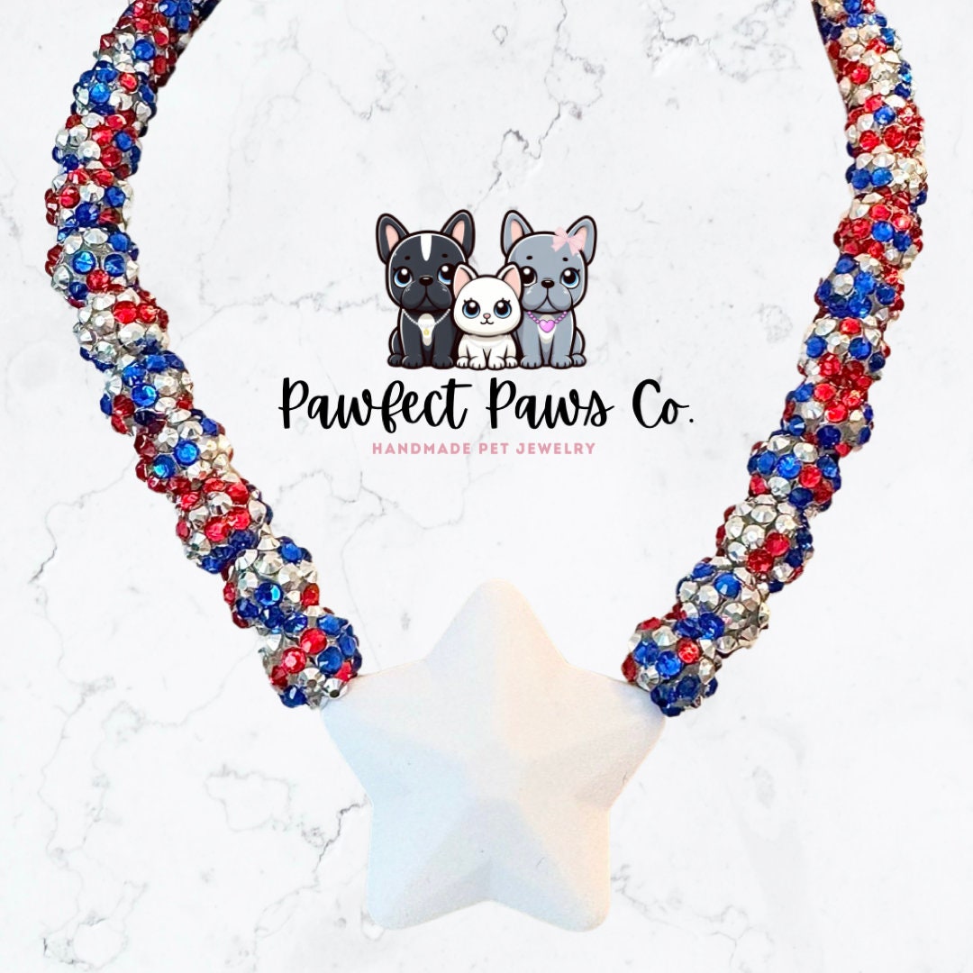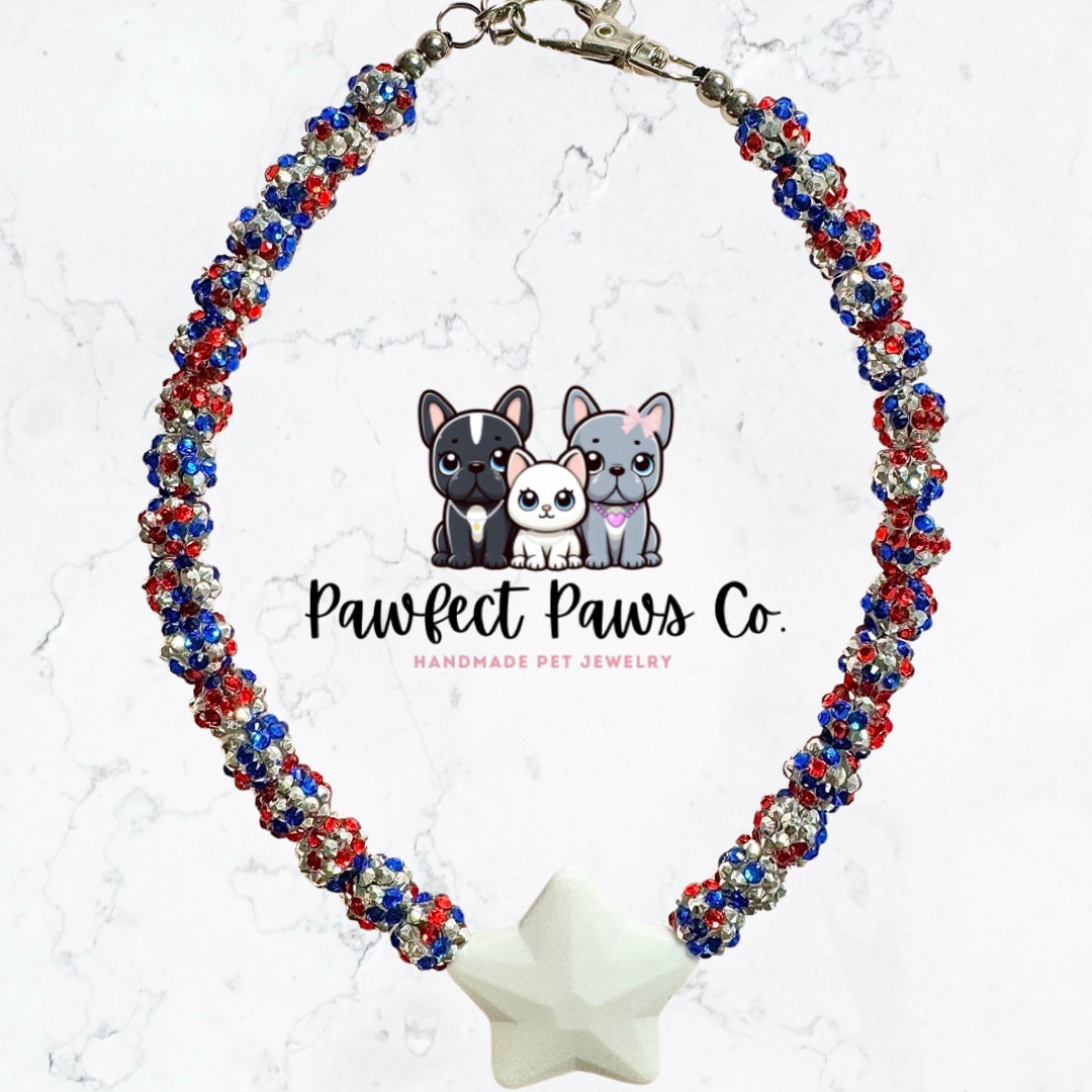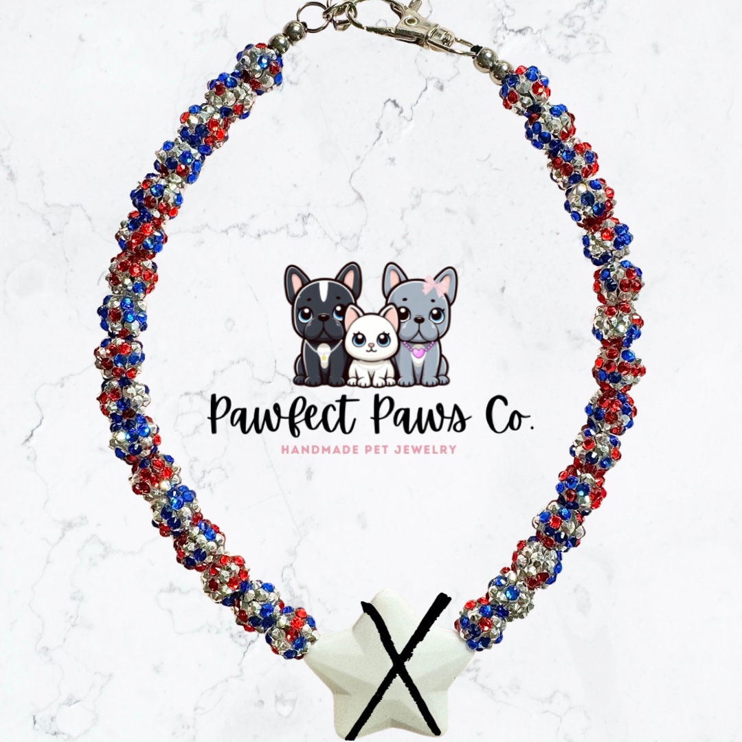 Firework* Red, White & Blue Sparkle American Custom Beaded Dog/Cat Collar Necklace!