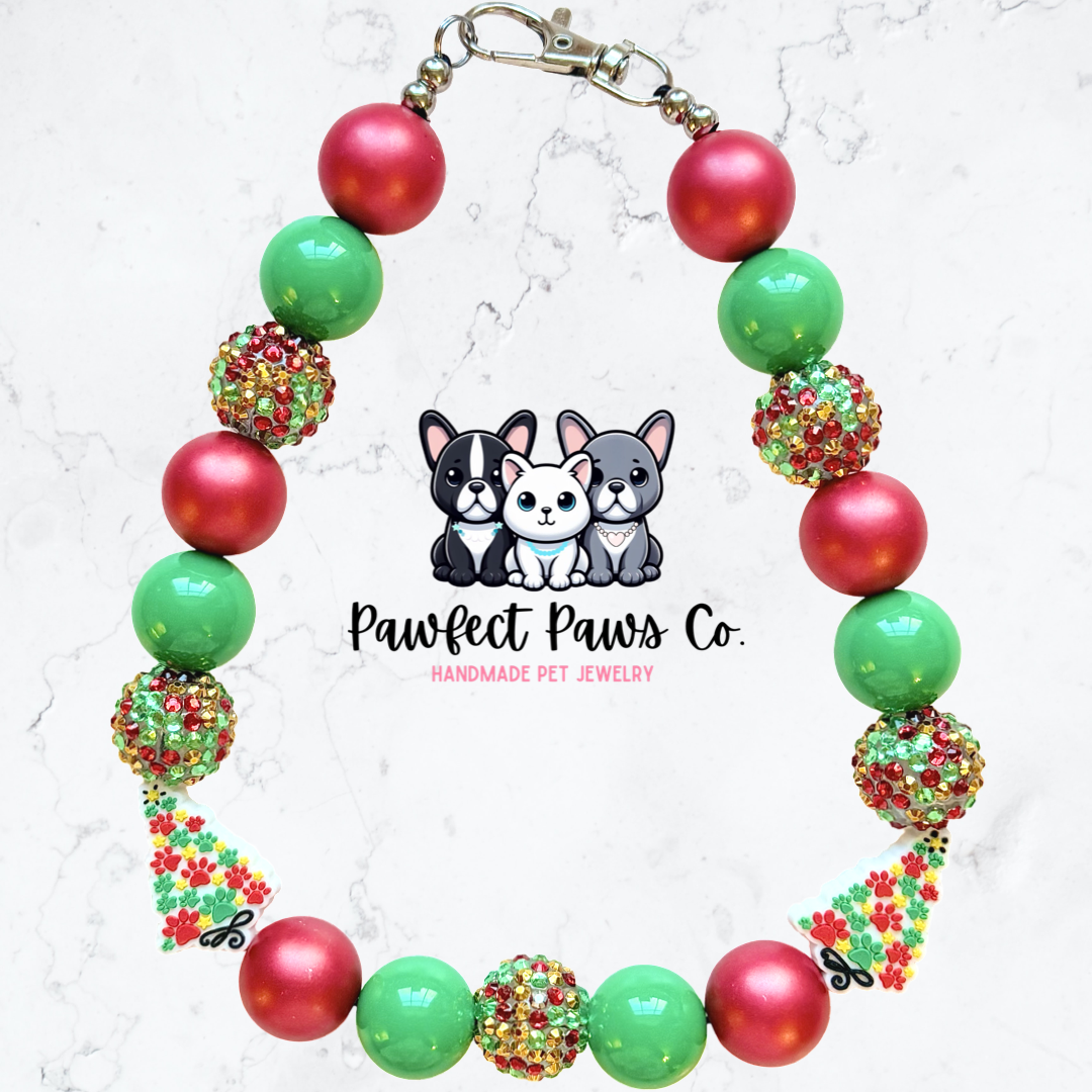 Happy Pawlidays* Green & Red Sparkle Christmas Custom Beaded Dog/Cat Necklace!