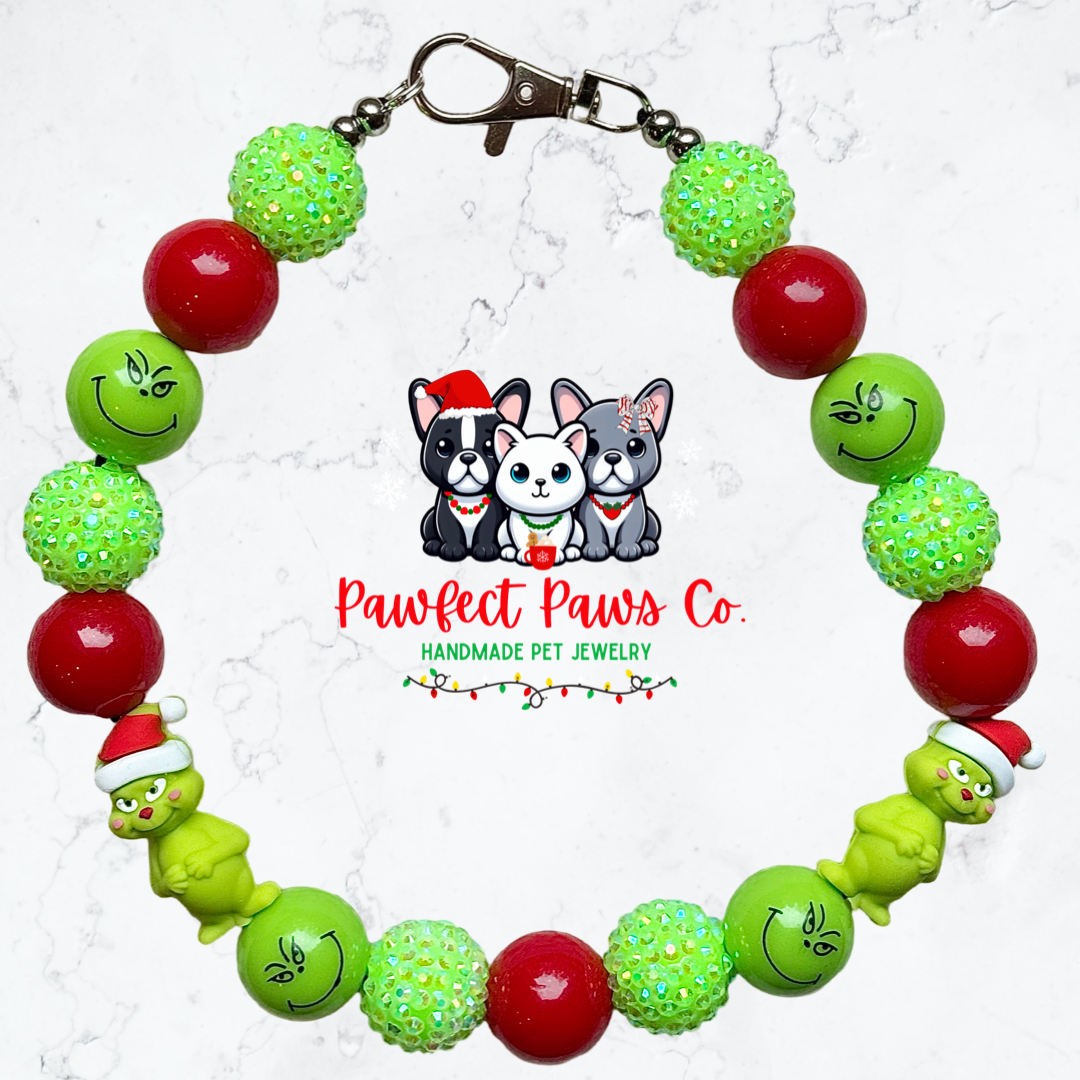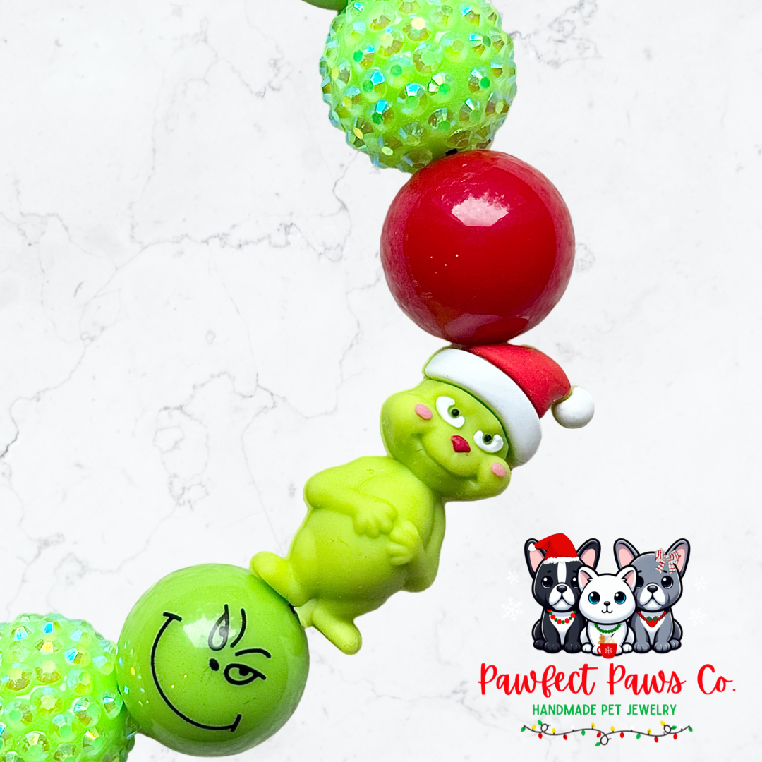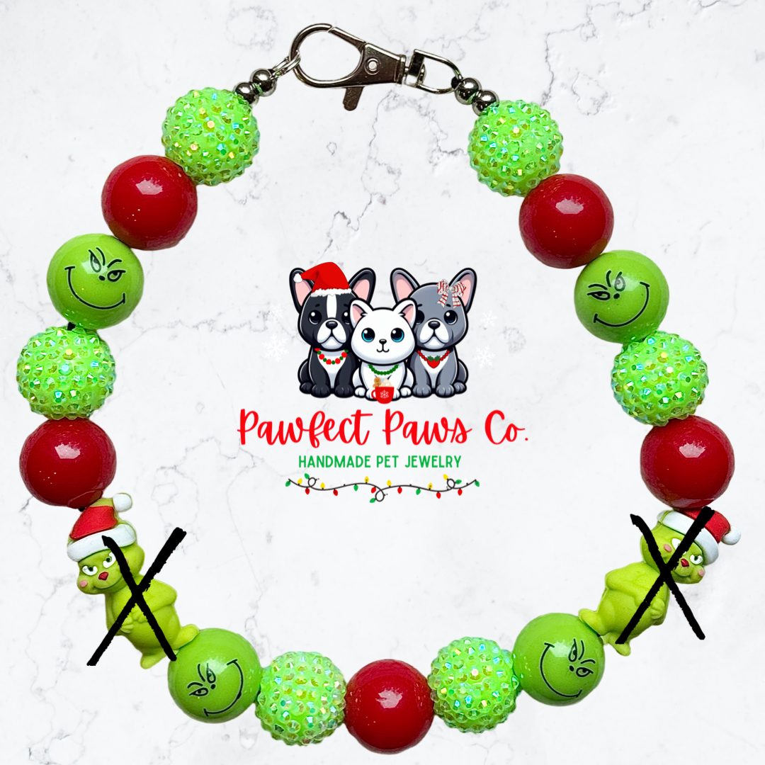Heart Grew 3x* Green & Red Stripe Christmas Custom Beaded Dog/Cat Necklace!