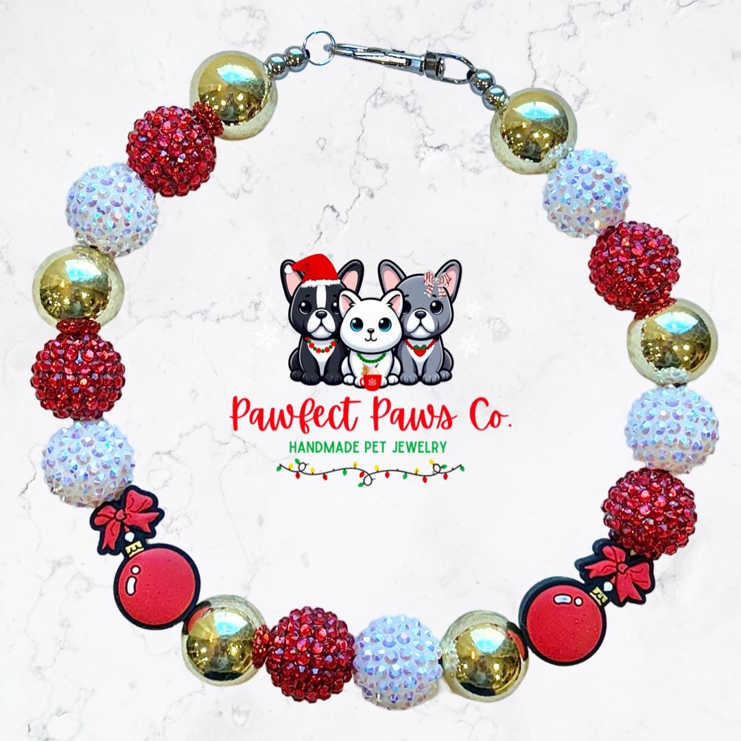 Jingle Bell Rock* Red, Gold & White Sparkle Christmas Ornament Custom Beaded Dog/Cat Necklace!