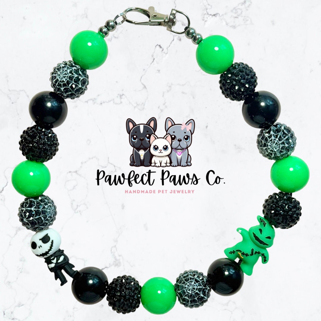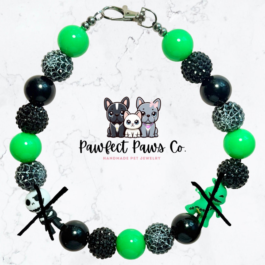 Nightmare Before* Green & Black Sparkle Jack and Oogie Custom Beaded Dog/Cat Necklace!
