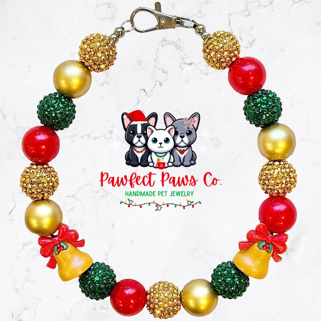 Noel* Red, Green & Gold Sparkle Bell Custom Beaded Dog/Cat Necklace!