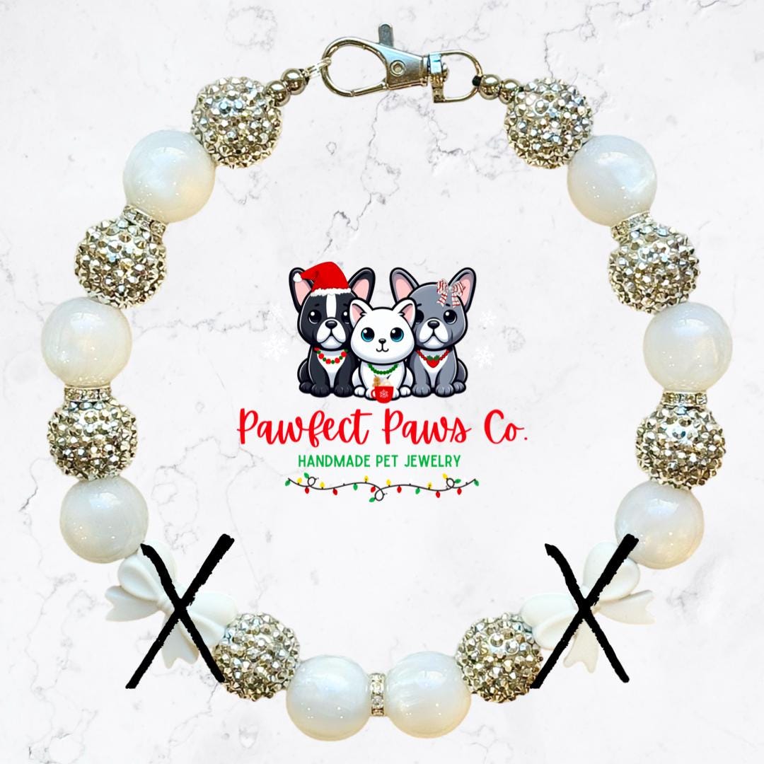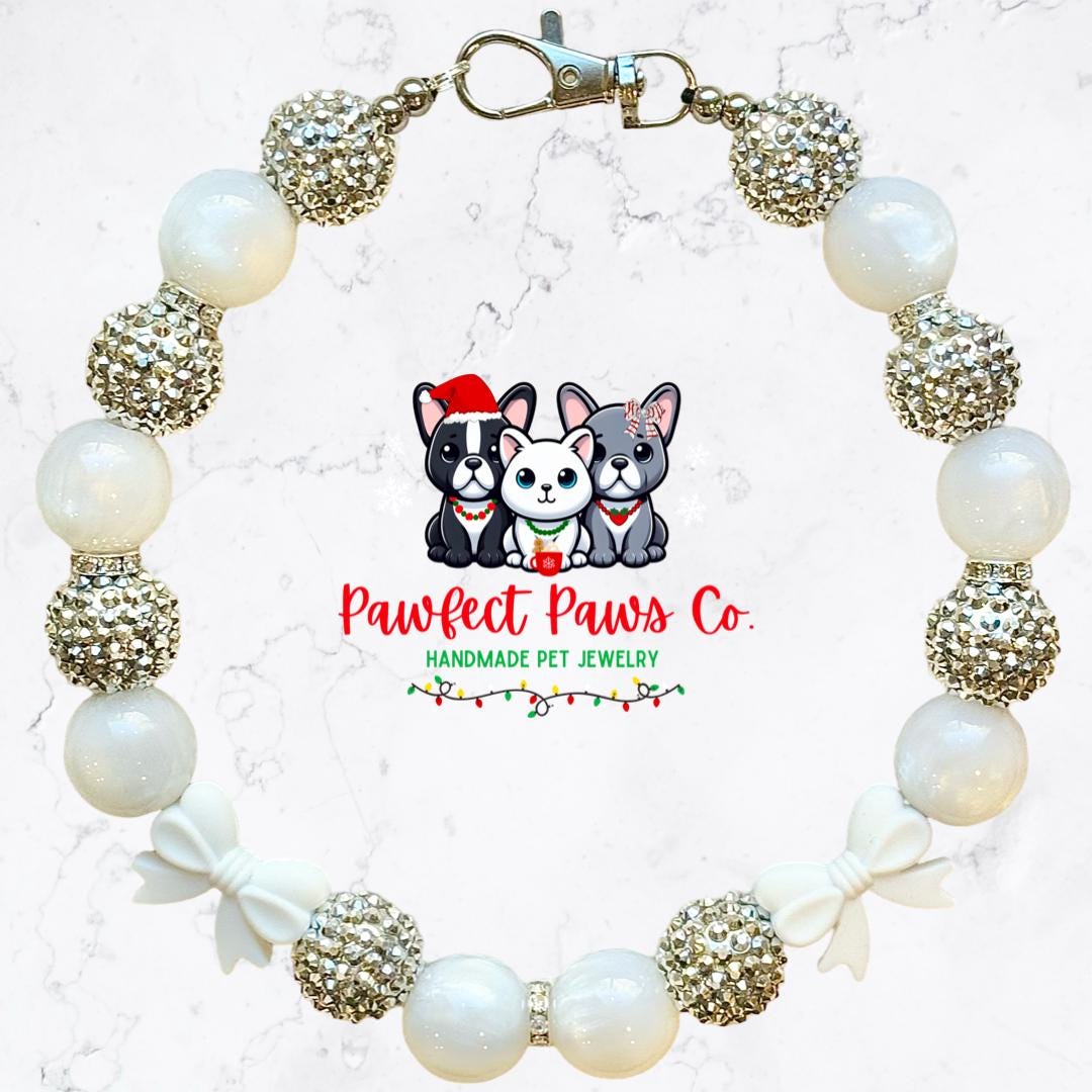 Silver Bells* White & Silver Sparkle Christmas Bow Custom Beaded Dog/Cat Necklace!